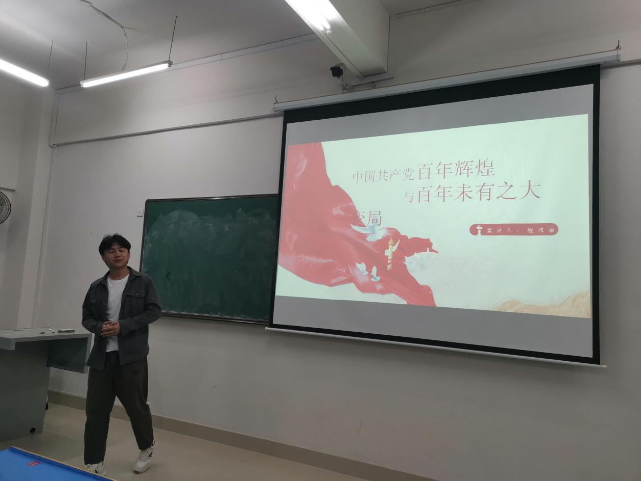 当今世界,百年变局和世纪疫情交织叠加,形势复杂、挑战严峻,作为新时代的见证者、开创者、建设者,我们每个人都应多一些主人翁精神、多一些担当豪情、多一些参与意识,为建设美好新时代、伟大共产主义事业而勠力同心、奋勇拼搏!通过此次党史宣讲活动,青年宣讲团不仅带领同学们重温了党的百年光辉历史和辉煌成就,而且还增强同学们的爱党之情,为传承红色基因奋发图强的信心和决心。