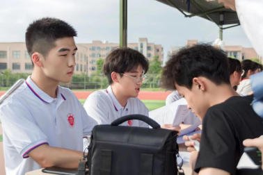 有序排队等待参加活动的同学们