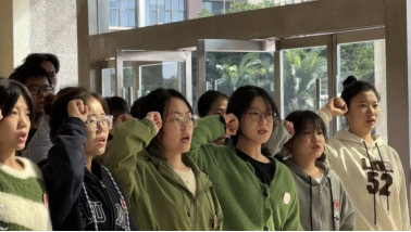 学员在博物馆前朗诵《少年中国说》
