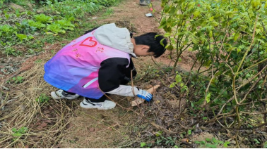 志愿者在捡拾菜园垃圾 邢嘉阳摄