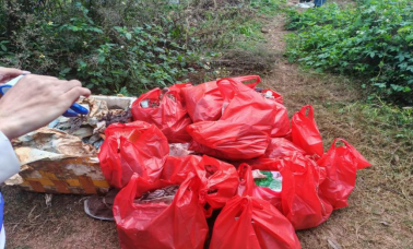 志愿者将垃圾集合堆放统一处理 邢嘉阳摄