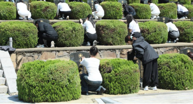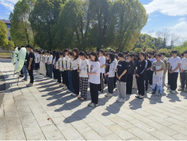 烈士陵园内气氛庄严肃穆,全体学员手持黄色菊花,肃立在革命烈士纪念碑前,聆听先烈们英勇斗争的事迹,高唱《中华人民共和国国歌》,向革命烈士默哀,敬献花圈、挽联、鲜花,为英雄烈士们擦拭墓碑,表达对革命先辈的敬仰和哀思。