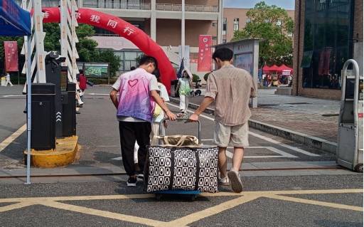 引导处志愿者为新生搬运行李