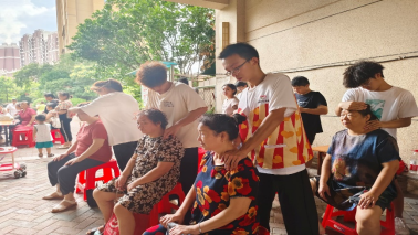 义诊现场,志愿者们不仅为社区居民提供免费测血糖、量血压、健康咨询等服务,更是耐心地科普高血压、高血糖等常见慢性病的预防要点和日常控制方法。志愿者们根据居民颈、肩、腰、腿等部位的不适情况,进行针对性推拿按摩,现场气氛热烈。