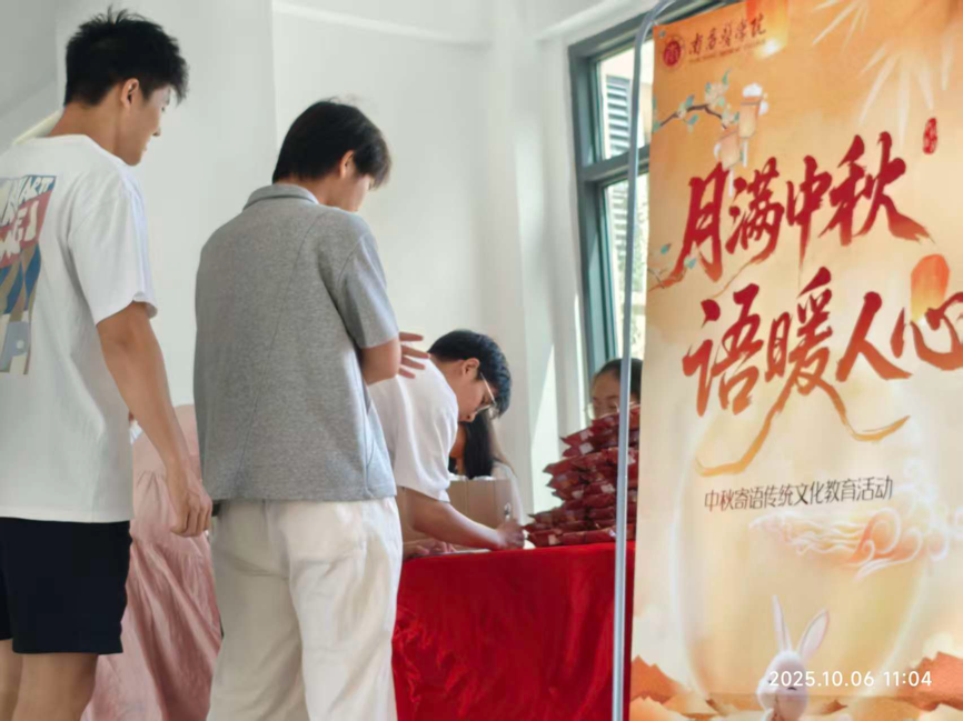 本次活动以“团圆、感恩、医者仁心”为主题,面向全院师生征集节日祝福。现场布置温馨雅致,气氛热烈。同学们踊跃参与,签到领取寄语卡后,纷纷提笔写下真挚的祝福与思念。一张张卡片承载着学子们对家人、朋友的挂念,也寄托着对祖国的深情问候。活动现场,志愿者们还为参与者送上象征团圆的月饼,传递节日的温暖与关怀,现场洋溢着欢声笑语。