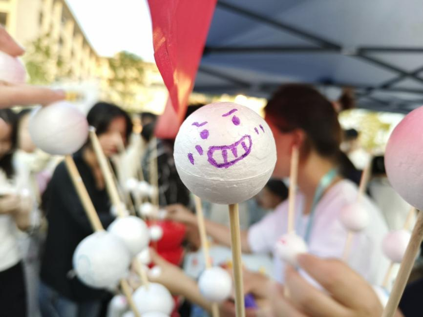 游园会精心设置四大主题关卡,巧妙融合中医智慧与心理调适技巧。“情绪面具”环节,参与者通过辨识不同情绪面具,学习中医“五脏对应五志”理论,理解情绪与身体的深层联系;“彩色笑脸”环节同学们在泡沫球上绘制创意表情,自由表达情绪,展现青春活力;“心灵驿站”则鼓励员工在明信片上写下暖心寄语,传递正能量,营造互助友爱的校园氛围;而“女巫的情绪毒药”则以轻松愉快的团体活动形式帮助参与者释放压力增进人际交流