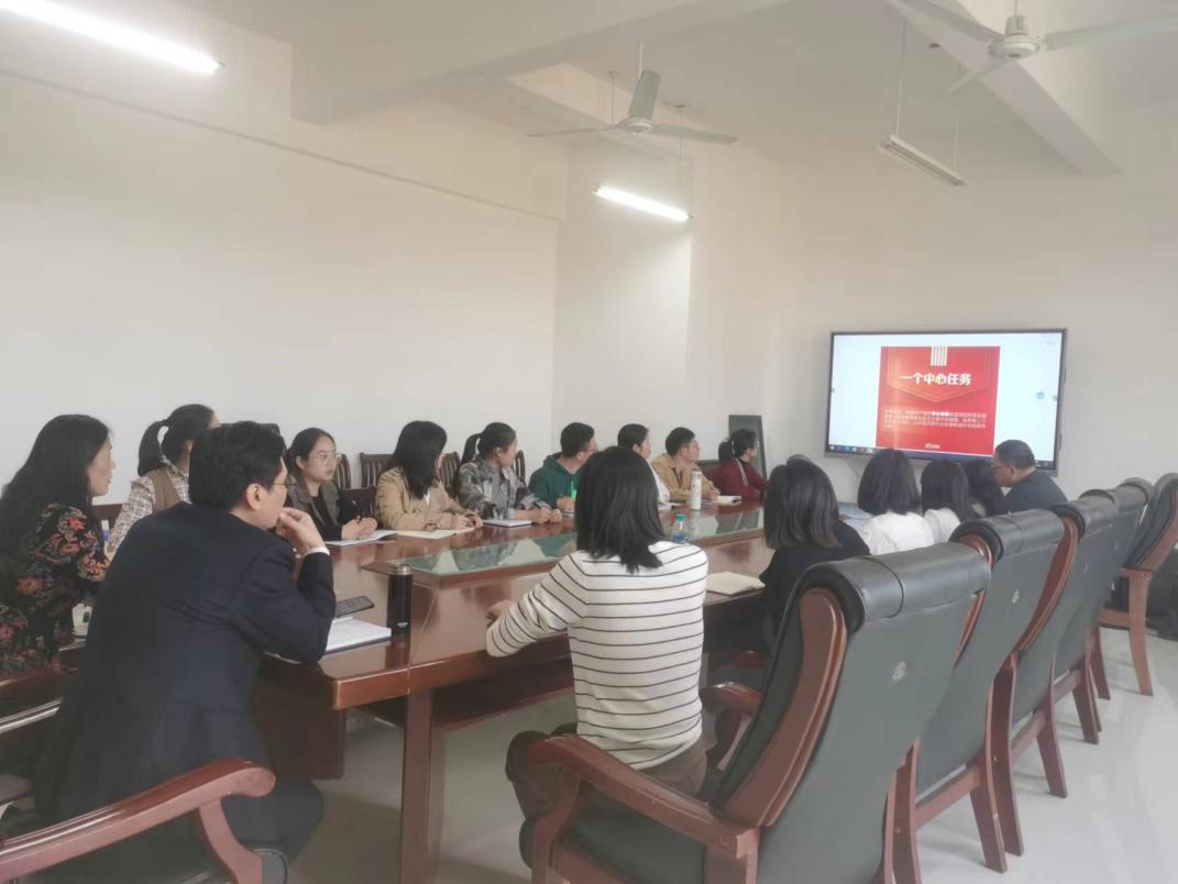 会上,由陶菁同志分两步对党的二十大精神进行领学。首先,以党的二十大报告中出现的9个数字为主线总览报告全文,包括:一个中心任务、第一要务、“两步走”战略安排、归根到底是两个“行”、三个“务必”、十年来经历了三件大事、五项重大原则、“五个必由之路”、六个“必须坚持”;接着,结合党的二十大报告学习手账和思维导图,带领大家学习了新时代十年的伟大变革、中国式现代化内涵等内容,重点学习了习近平总书记报告中全面建设社会主义现代化的基础性、战略性支撑是教育、科技、人才的相关内容,要求大家结合工作岗位,深学细悟报告中“我们要坚持教育优先发展、科技自立自强、人才引领驱动,加快建设教育强国、科技强国、人才强国,坚持为党育人、为国育才,全面提高人才自主培养质量,着力造就拔尖创新人才,聚天下英才而用之”的精髓要义。